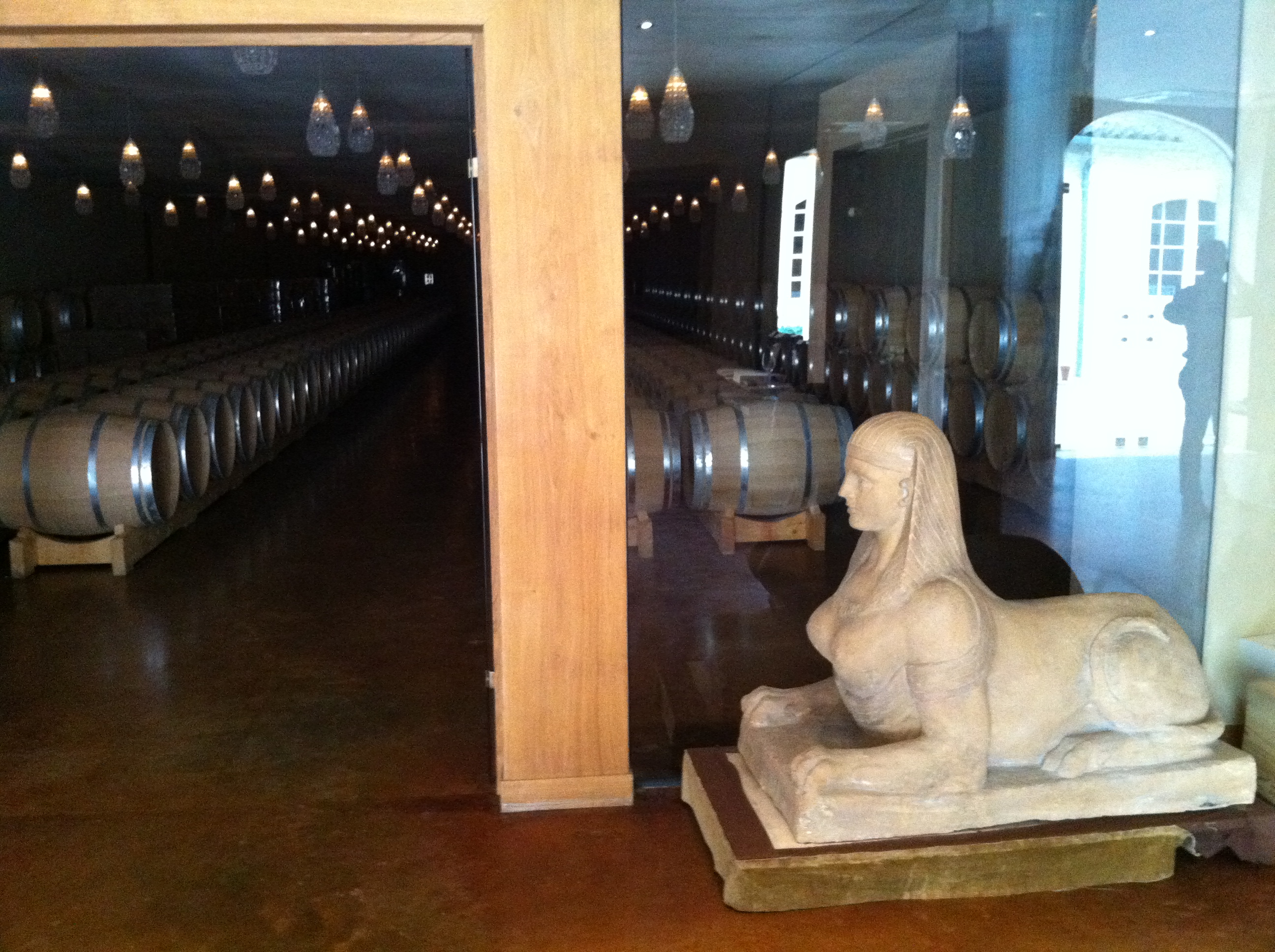 We had to hurry over to our next appointment at Chateau Angelus – luckily there was pretty good signage on the way, or who knows how long it would’ve taken us to find the estate on the winding roads. But when we did find it, wow – it was a hive of activity!