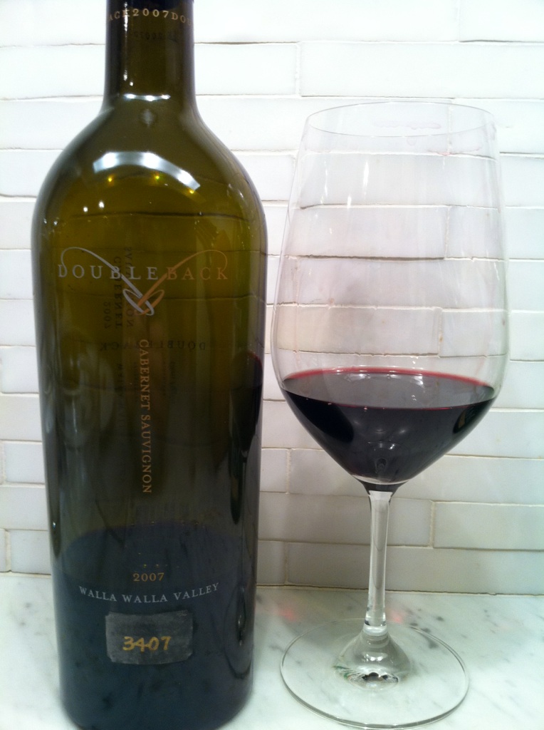 This weekend we’ll be reviewing wines from Taste Washington, the annual show where winemakers from all over the state pour their vintages for enthusiasts, media and the trade. To get in the spirit, we decided to crack open a bottle of Washington wine that we haven’t had for a while, and settled on the 2007 Doubleback Cabernet Sauvignon. This is the debut vintage of Doubleback from Drew & Maura Bledsoe, with Chris Figgins as the winemaker. It has been a couple of years since we have had the 2007 Doubleback, so I wanted to see where it was as far as the evolutionary track. Drew “drew” a lot of flack in the beginning for being an athlete making wine, and I’ve been impressed all along with his passion and insistence on quality. I’m pleased to report that the 2007 lives up to his high expectations so far.