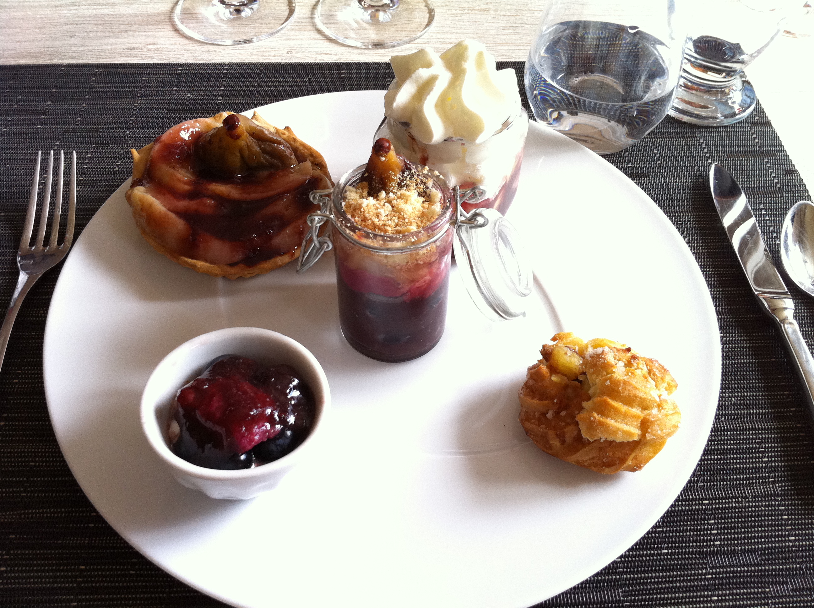 As if this wasn’t enough food, Chef Phillipe had prepared not one but FIVE desserts for us to sample. NOW we know what they were working on while we were eating away. Ooh la la, but they were good.