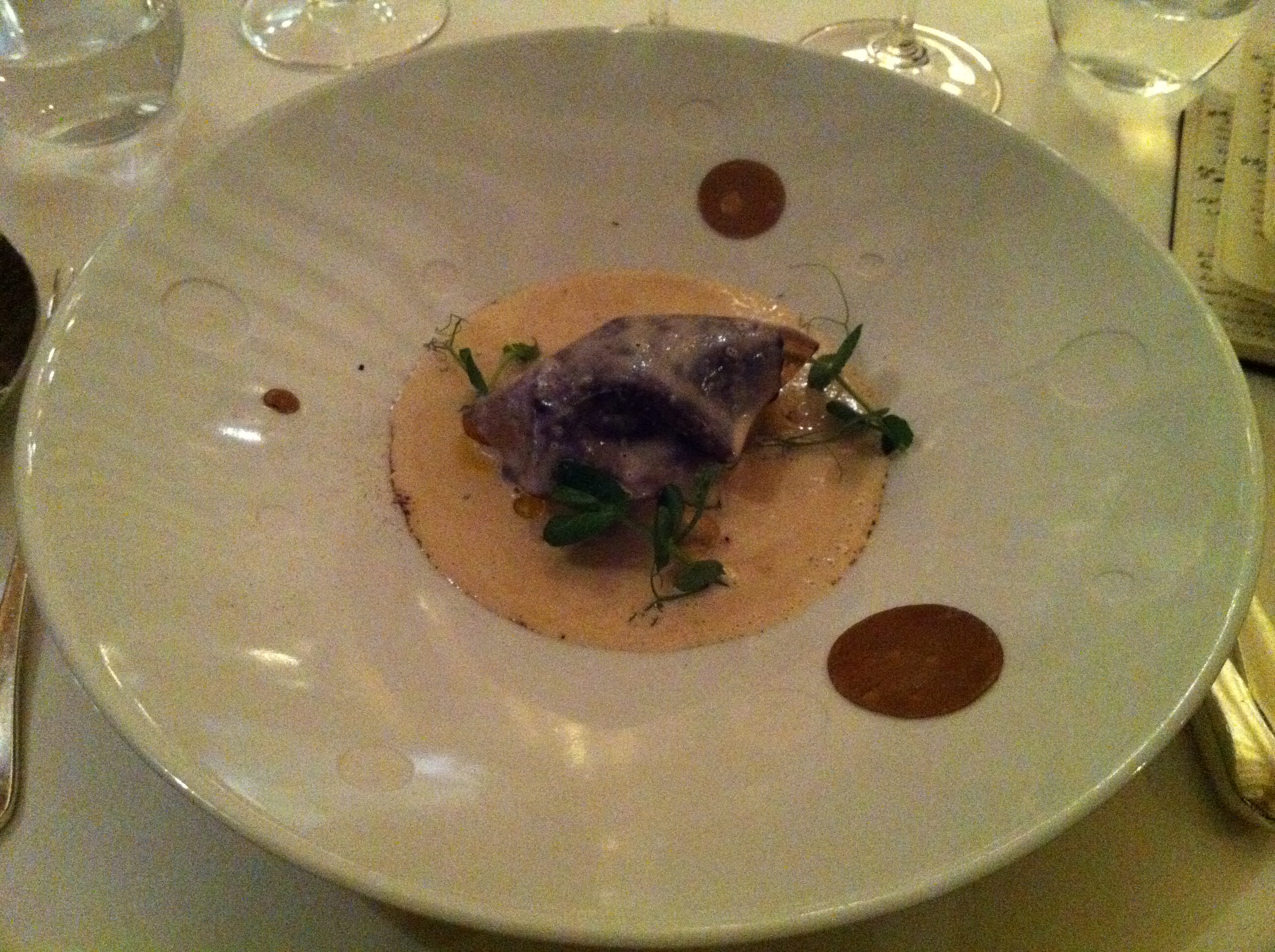 For this evening, we had the eight course Chef’s table experience and I brought in some wine to go with it. It was great to see William again, as he got us settled in at the table, he assured us that he had a wonderful evening in store for us. We started things off with a bottle of the 2002 Krug Brut vintage Champagne. Krug is my absolute favorite Champagne producer above everyone else, and they are also very singular in style. The 2002 Krug was just released about three months prior and my mouth was watering in anticipation to see what the Masters at Krug had created. Krug releases their Champagnes when they feel they are ready, so in this case the 2003 was released before the 2002.