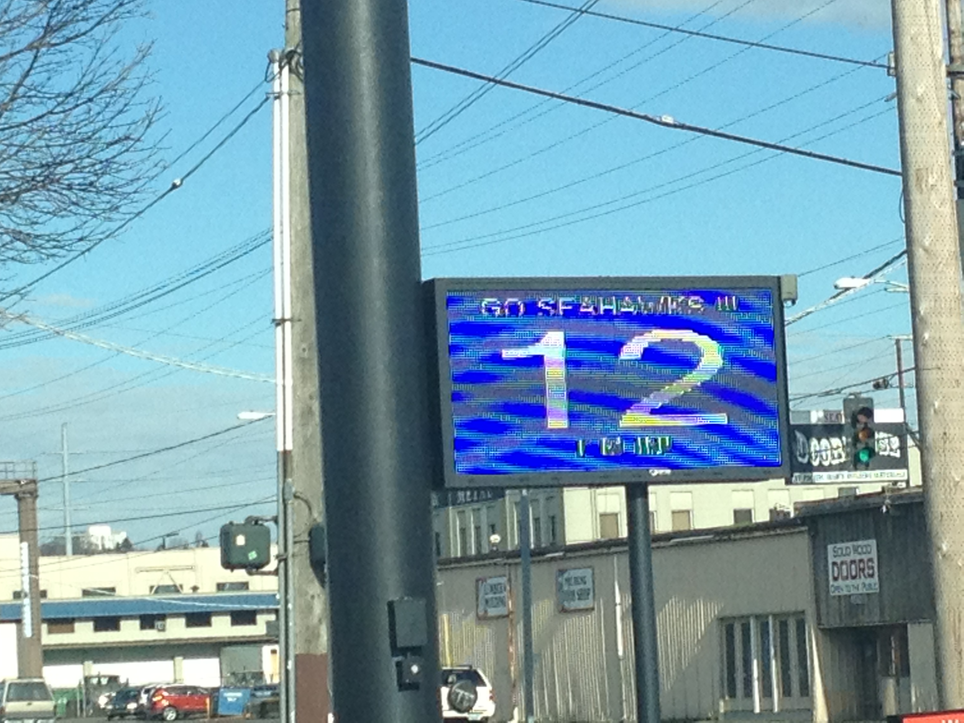 The city is pumped – there are 12th man signs everywhere, fans are decked out in blue and green and the city is deserted – everyone is hunkering down to watch the game.