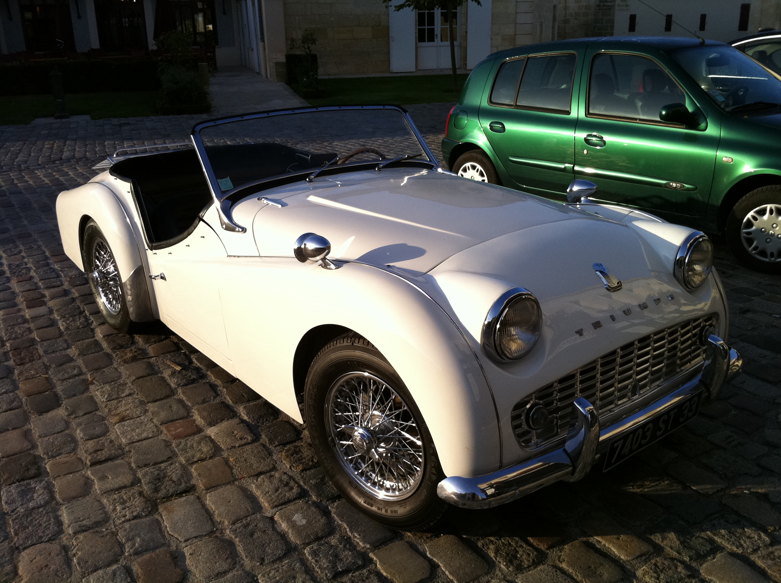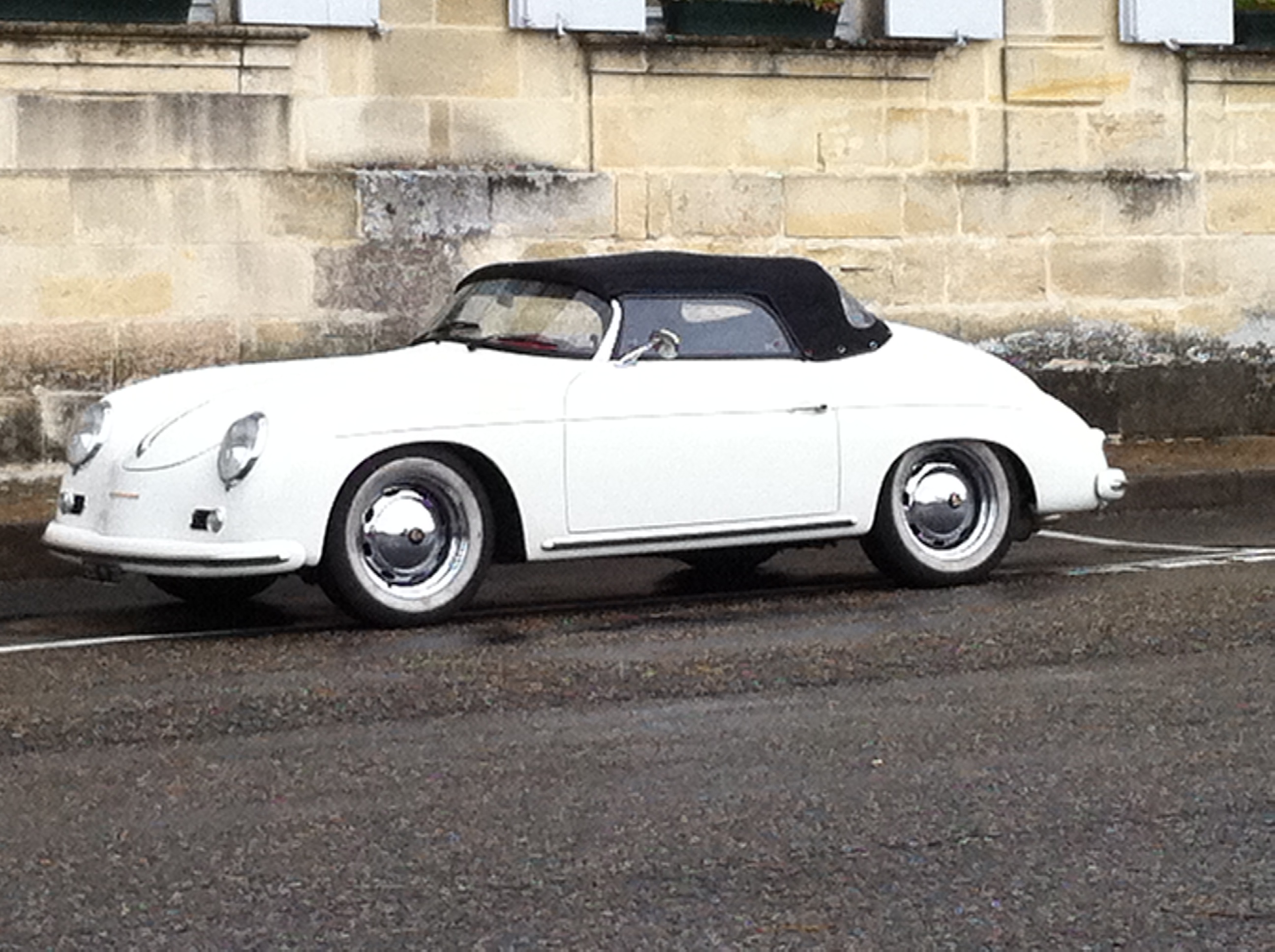 As we drove along in the “mystery beast” throughout Bordeaux (more on that in a minute), Bob couldn’t help but notice a couple of spectacular cars that we had to stop and admire. His dad used to race cars like these when he was growing up, so he can never resist taking a good look. I suspect you’ll admire them too.
